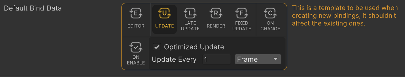 * **Default Bind Data**: this serves as the template for new bindings.